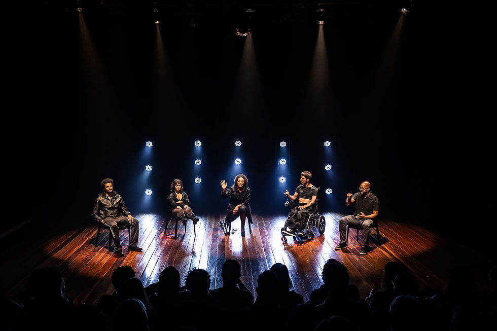No Rio de Janeiro, quatro artistas PCDs, vindos de lugares diversos, se reúnem para ensaiar uma peça teatral. Celebram alegria de seguir o caminho artístico, reafirmando no palco a potência de suas vozes e a luta contra o capacitismo.